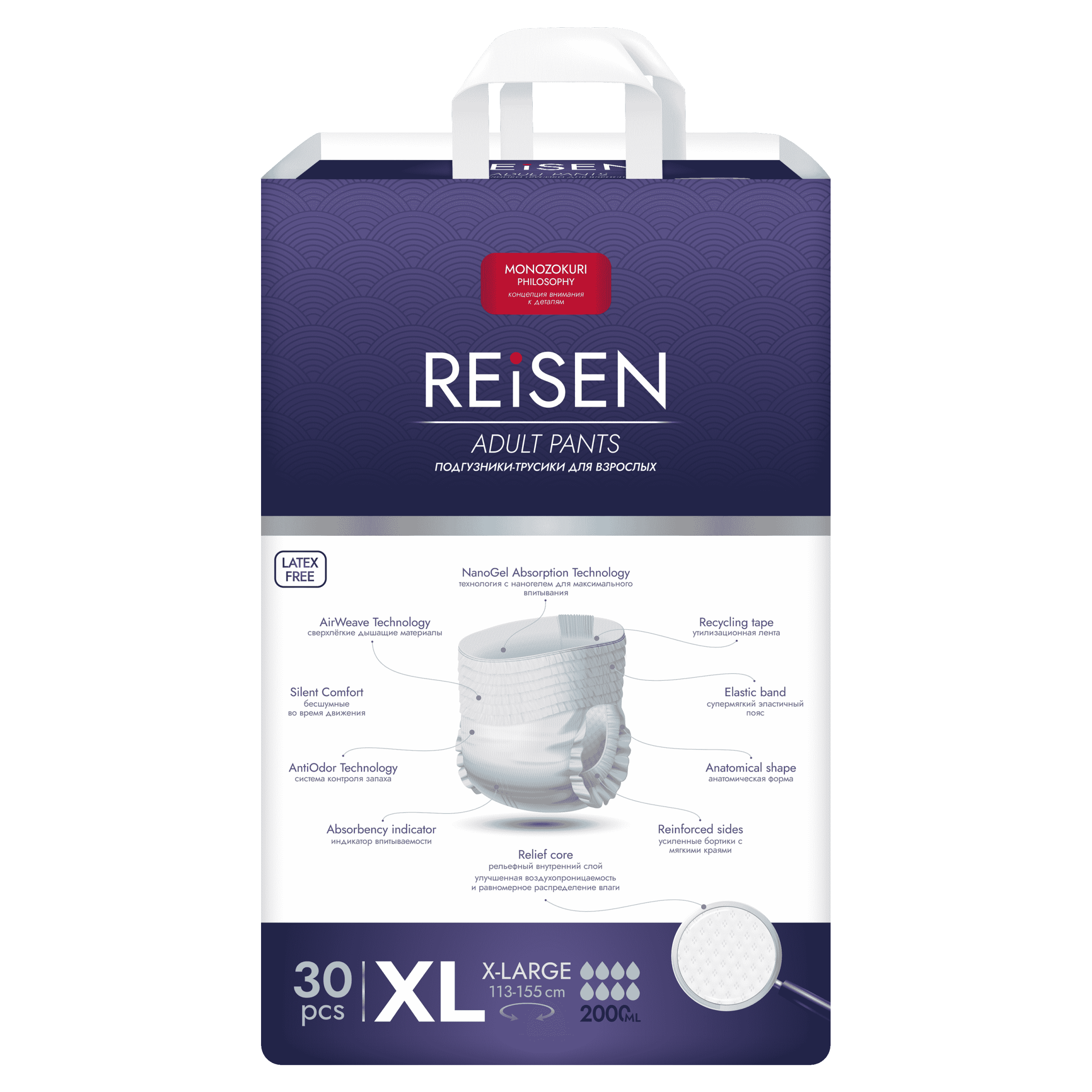 Анатомическая форма, эластичная резинка, усиленные бортики и индикатор впитываемости делают подгузники и подгузники-трусы REISEN надёжными и удобными для ежедневного использования.